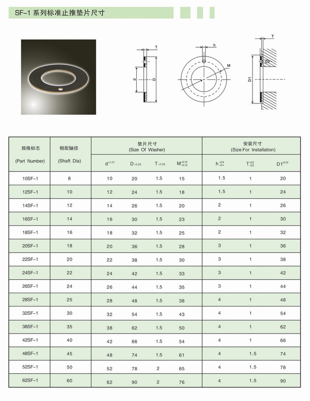 SF-2軸套外徑及相配軸徑、座孔公差表